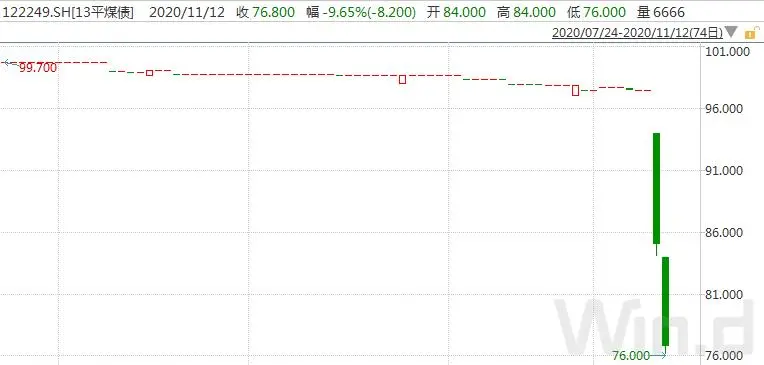 其他煤企债券也被带崩,平煤股份“13平煤债”连续两日下跌,跌9.65%报76.8元,冀中能源“16冀中01”跌8.14%,均创历史新低。