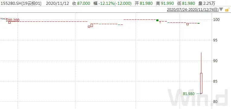 云南省城市建设投资集团存续债“19云投01”跌逾17%报87元,亦创历史新低,成交36笔,成交金额174.72万元,“18云城02”跌逾9%。