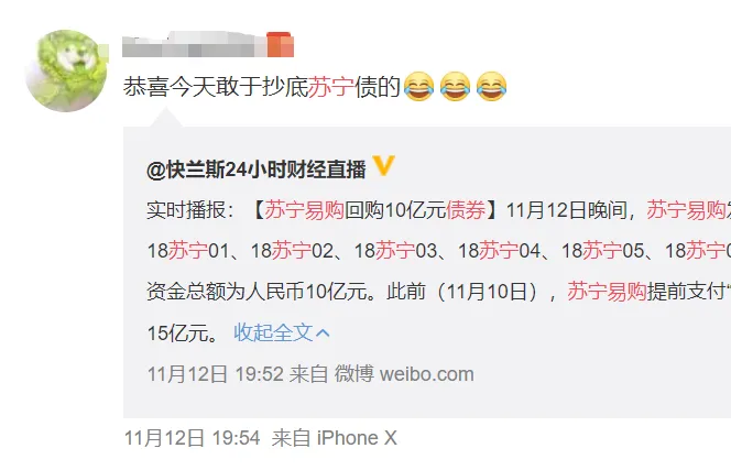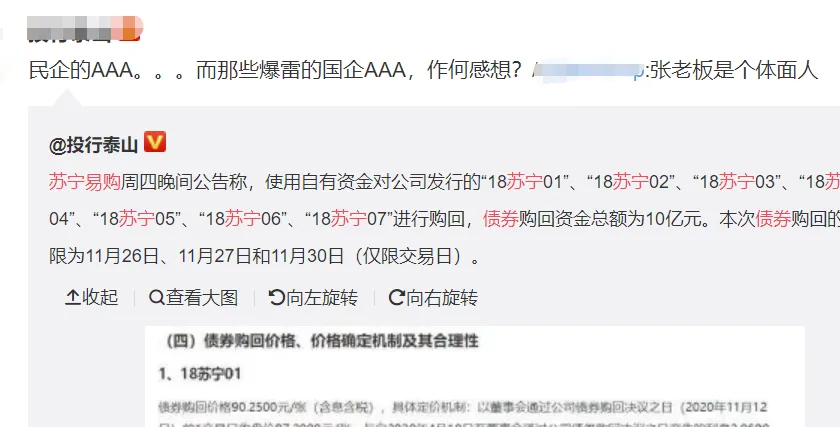 市场此前分析,苏宁电器集团及其上市公司苏宁易购半年多将有逾300亿元债券到期或面临回售,此前支持恒大集团并未收回战投款加深了投资者对流动性的忧虑。